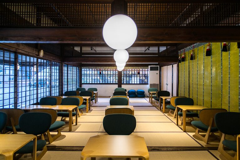 「d食堂 京都」は、ロングライフデザインをテーマに活動する「D&DEPARTMENT PROJECT」の活動の一環として作られた本山佛光寺の境内にあるショップ&カフェ。地域のパートナーシップを重視し、京都ならではの魅力を提供するダイニングカフェです。茶所を利用した風情ある佇まいの「d食堂」では、畳の上で靴を脱いでゆったりと過ごせる空間が広がっています。