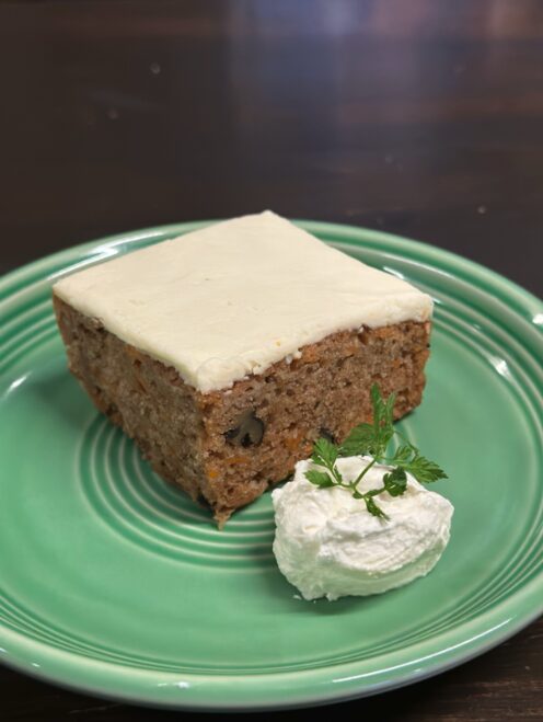 カントリー風のあたたかみある店内が可愛らしい、「さらさ麸屋町」。古民家をリノベーションしたお店で、ポップな緑色の扉が特徴の木のぬくもりを感じる古民家カフェです。看板メニューは、クリームチーズの分厚いフロスティングと大ぶりカットが嬉しいキャロットケーキ。上にのったクリームがくどすぎず、シナモン香る生地の中にくるみやココナッツがゴロゴロ入っているため食べごたえがあると評判なんだとか。