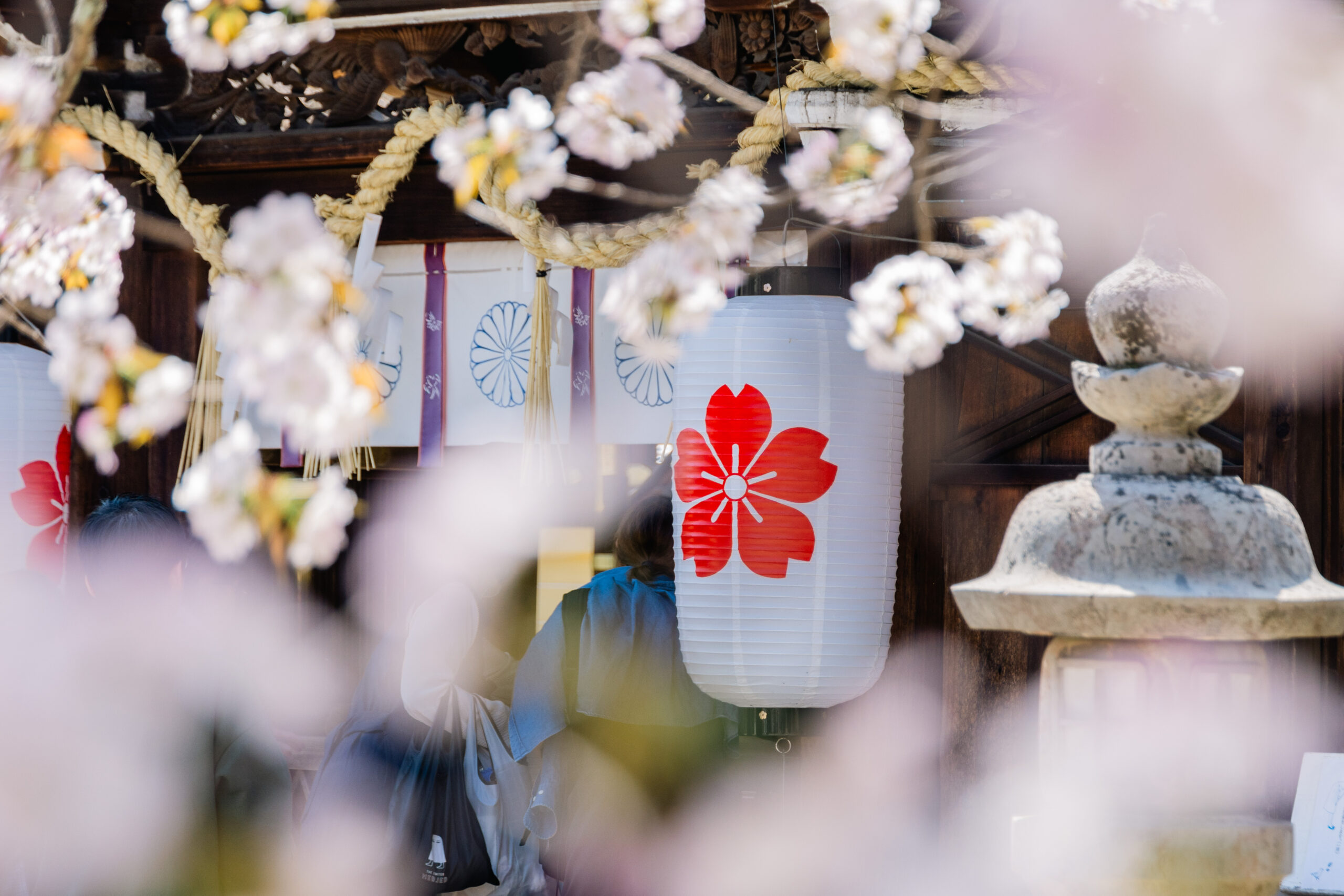 平野神社門前の魁桜は、早咲きで、都のお花見の始まりを告げる桜として知られています。六角堂の御幸桜は、咲き始め。まだ白色で、これから徐々にピンク色へと変化していきます。