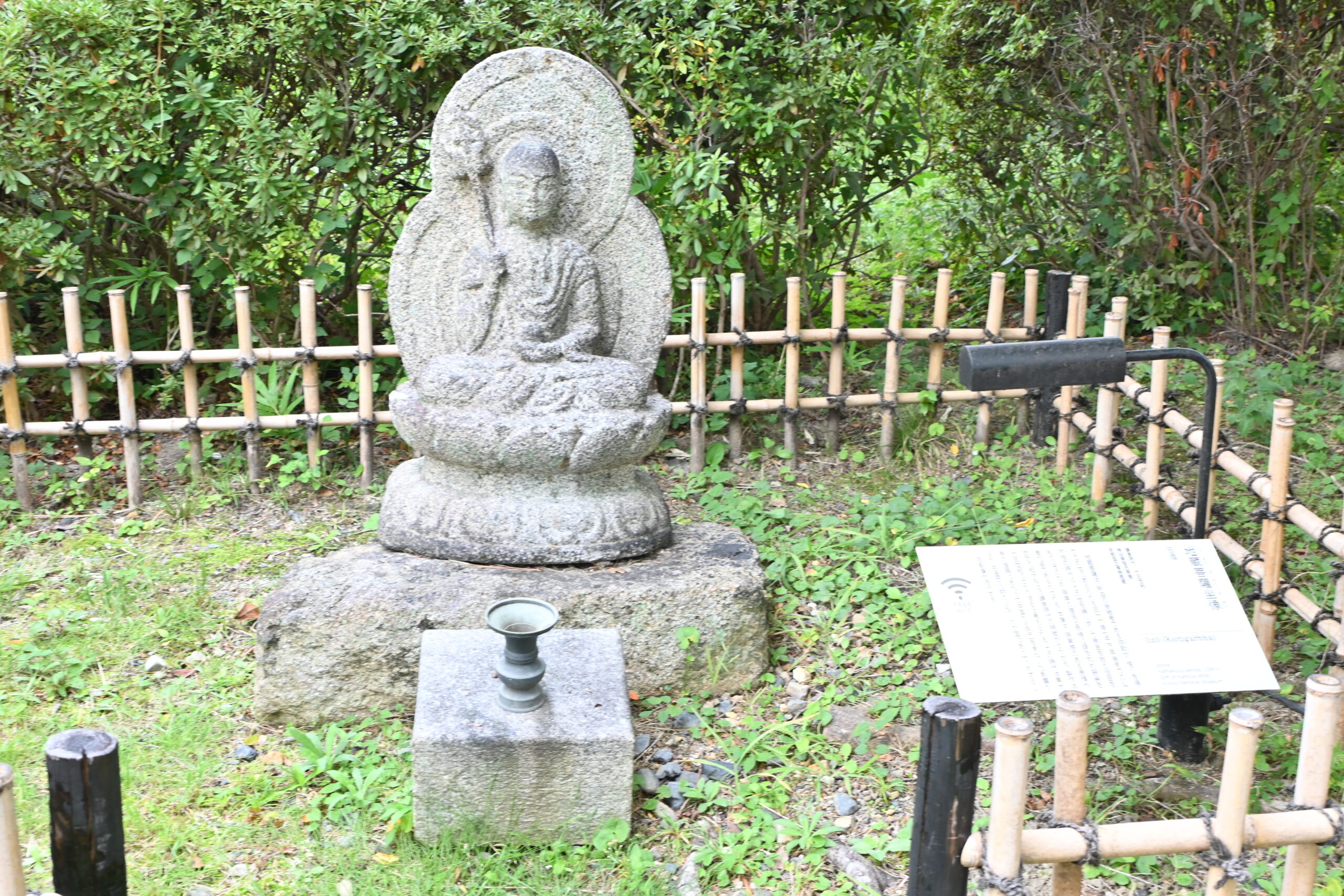 庭園エリアにある野外展示は、ほとんどが歴史的遺構によるものです。古くからあるお寺の石仏や、石橋の柱などが展示されています。なかにはかつての博物館の敷地内や周辺地域の遺構なども。京都の歴史を尊重する博物館の姿勢が伺えます。