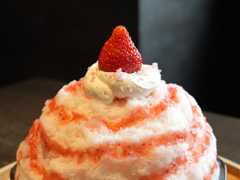 ひときわ目を引く「恋するいちごミルク」は、その名のとおり、甘酸っぱさとまろやかさのコントラストが絶妙に調和し、まるで初恋のようなときめきを感じさせるかき氷です。