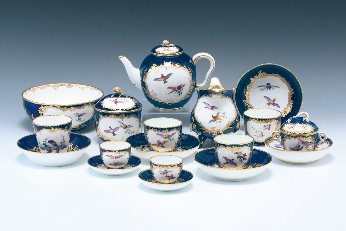 《瑠璃地色絵金彩鳥図ティーサーヴィス》 1754-59年 個人蔵