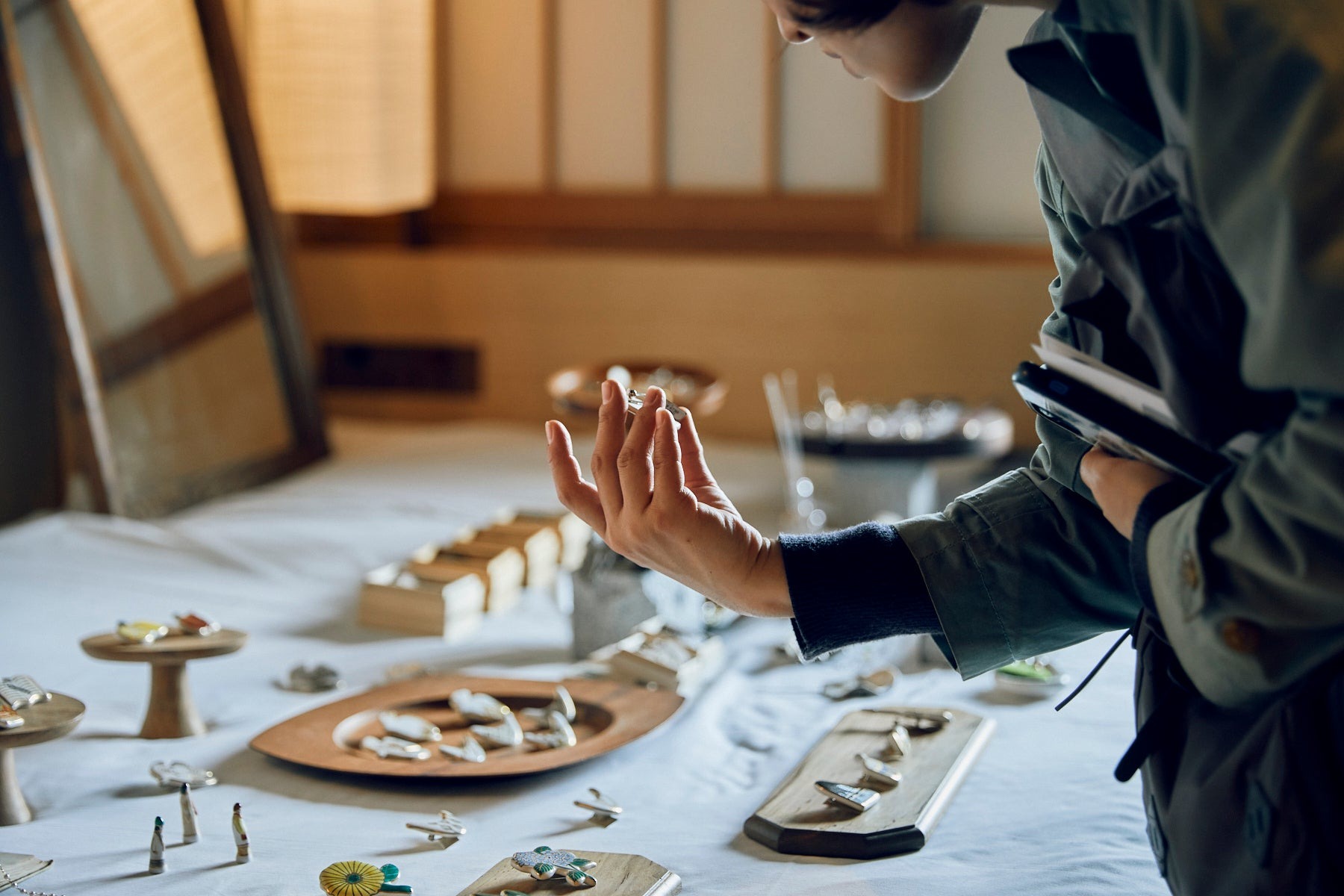 今年で9回目の開催となるこちらのイベントは、毎年ホテル カンラ 京都で行われてきました。応募制で出展者を募り、審査会を経て選ばれた作り手が参加します。2026年は過去最多となる58組88ブランドが出展予定です。会場の大きな特徴は、ホテルの客室38室を使って展示を行う点です。ベッドやリビングスペースがある空間で作品を見ることができます。一般的な展示会場とは異なり、暮らしに近い環境で器や工芸品を手に取れることが、DIALOGUEならではの見どころです。