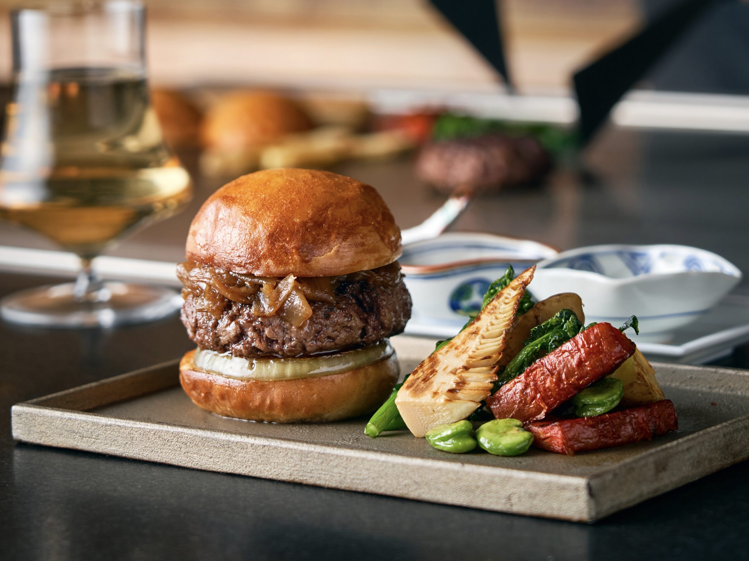 限定メニューとして、京都のブランド牛を中心とした和牛パティを使った「鉄板焼き 黒毛和牛100%バーガー」が登場します。目の前の鉄板で焼き上げるスタイルで、旬の野菜もあわせて提供されます。仕上げの工程を目の前で見ることができ、工芸作品の制作過程と通じる「つくる」姿勢を感じられる内容です。