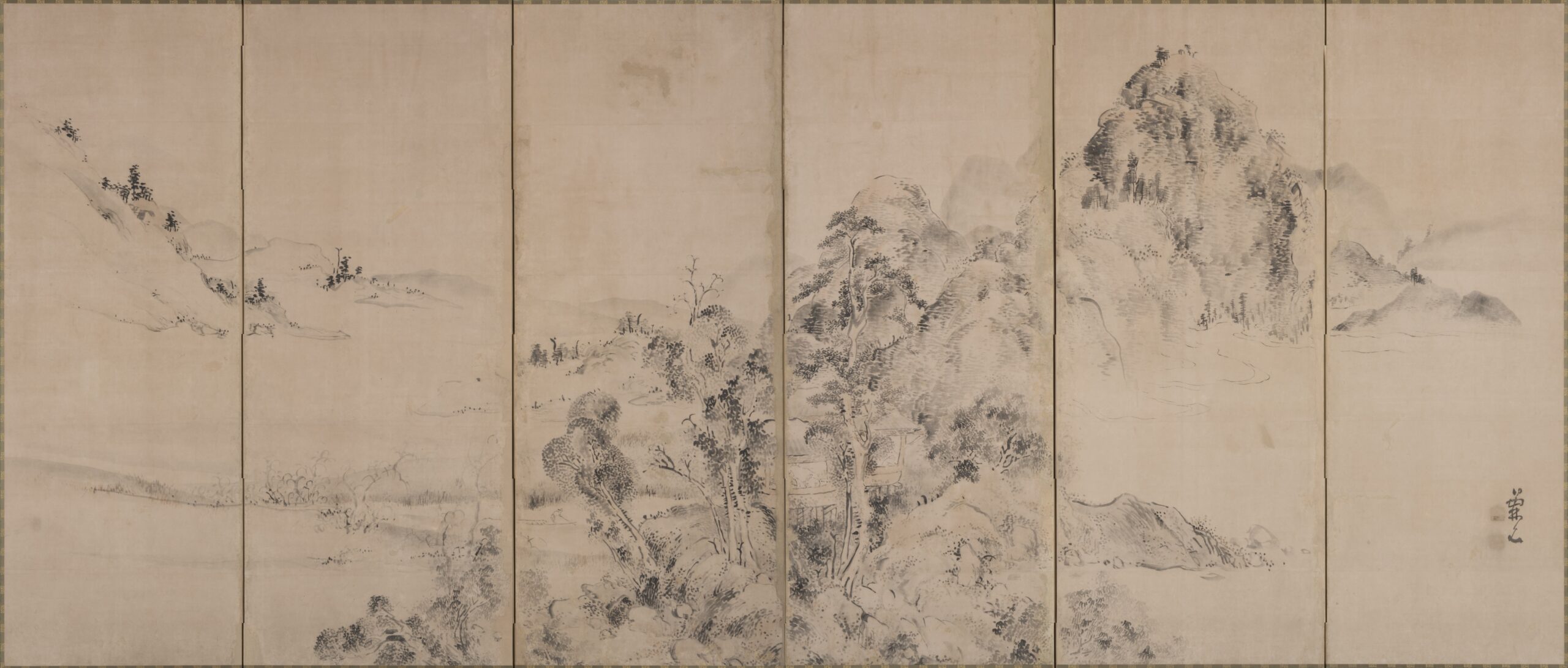 山中清遊図屏風 円山応挙筆(右隻) 六曲一双 紙本墨画淡彩 江戸時代 相国寺蔵(Ⅰ期)