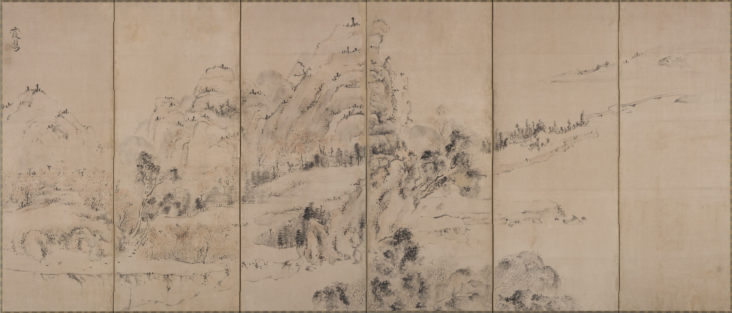 山中清遊図屏風 円山応挙筆(左隻) 六曲一双 紙本墨画淡彩 江戸時代 相国寺蔵(Ⅰ期)