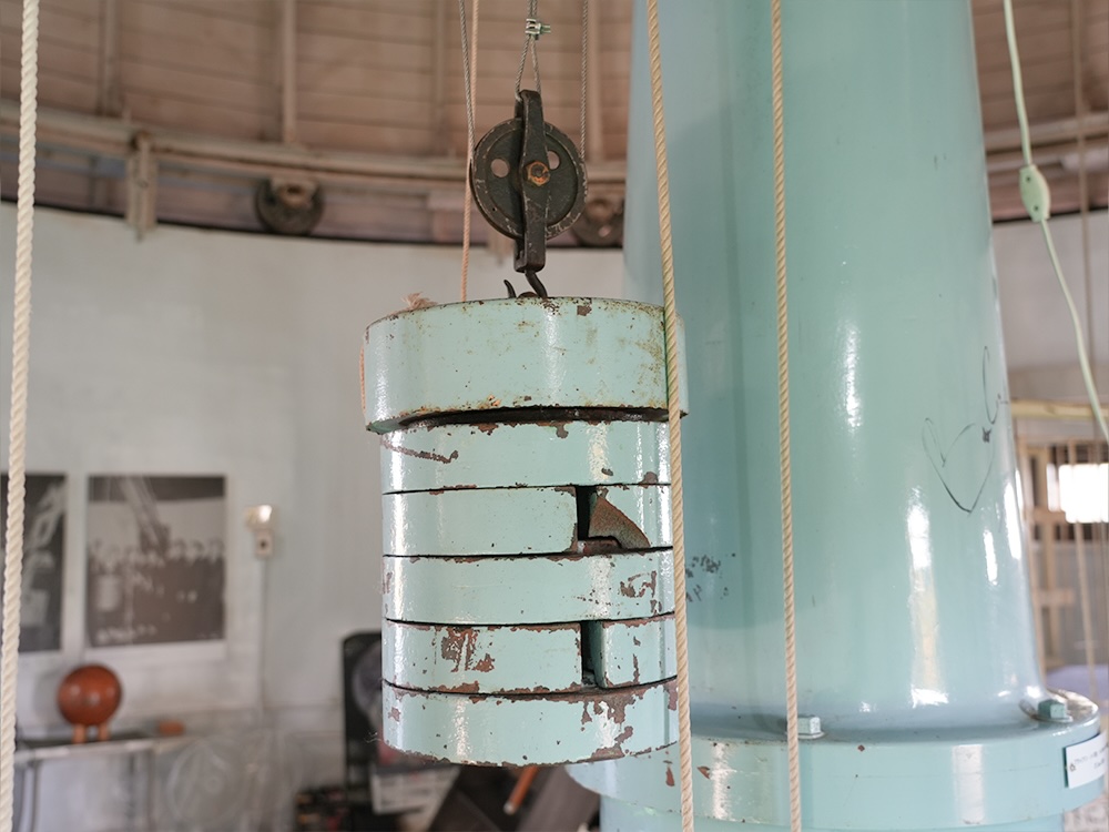 この望遠鏡は接眼部が高いためリフトに乗って観望します。また、望遠鏡の駆動は重りの重力を利用しており、現在でもこの方法を使っているのは世界的にも珍しいそうです。