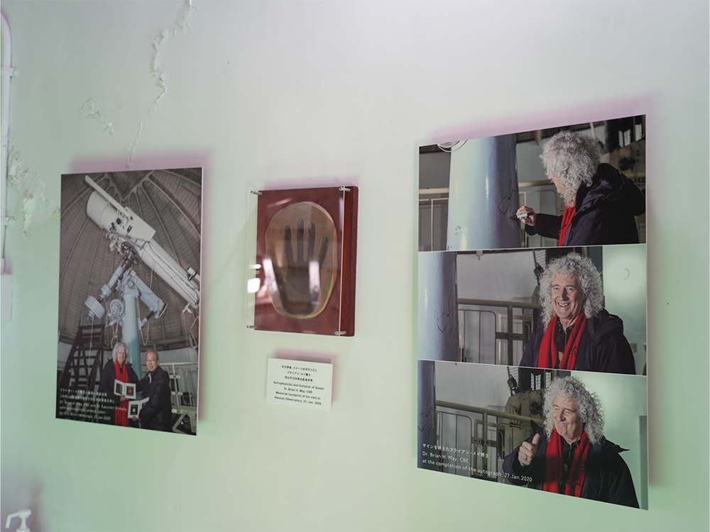 世界的ロックバンド「クイーン」のギタリストで宇宙物理学者でもあるブライアン・メイさんが見学した際のサインと手形も見られます。