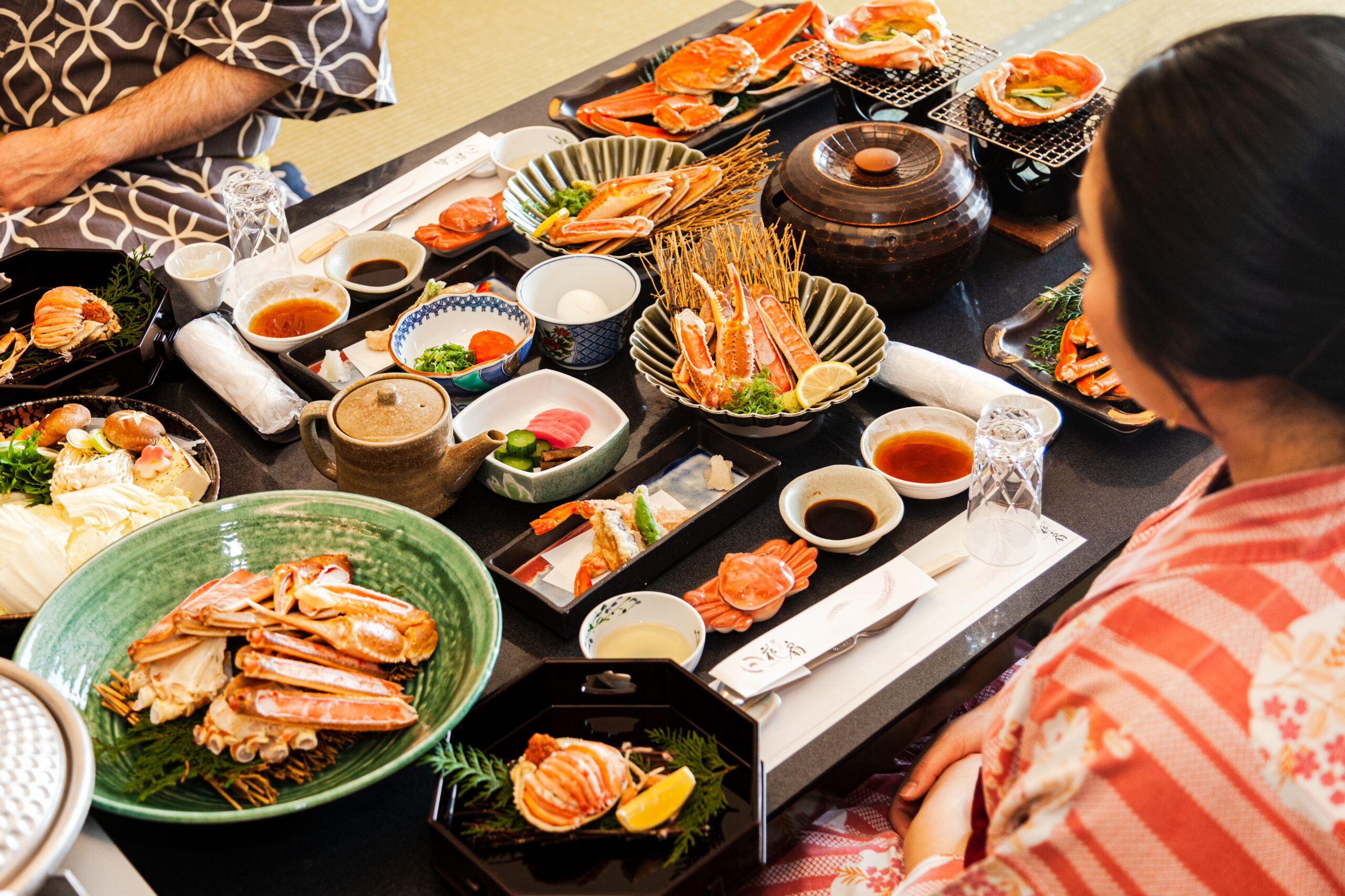 多くの宿では冬季限定のカニと温泉プランが用意され、湯上がりにゆったりと味わうカニ料理は格別です。甲羅焼きの香りに包まれながら、地域ならではの地酒を味わう味わうひとときは、まさに京丹後の冬の贅沢。旅の目的が「温泉+カニ」という人も多い、魅力あふれる季節です。