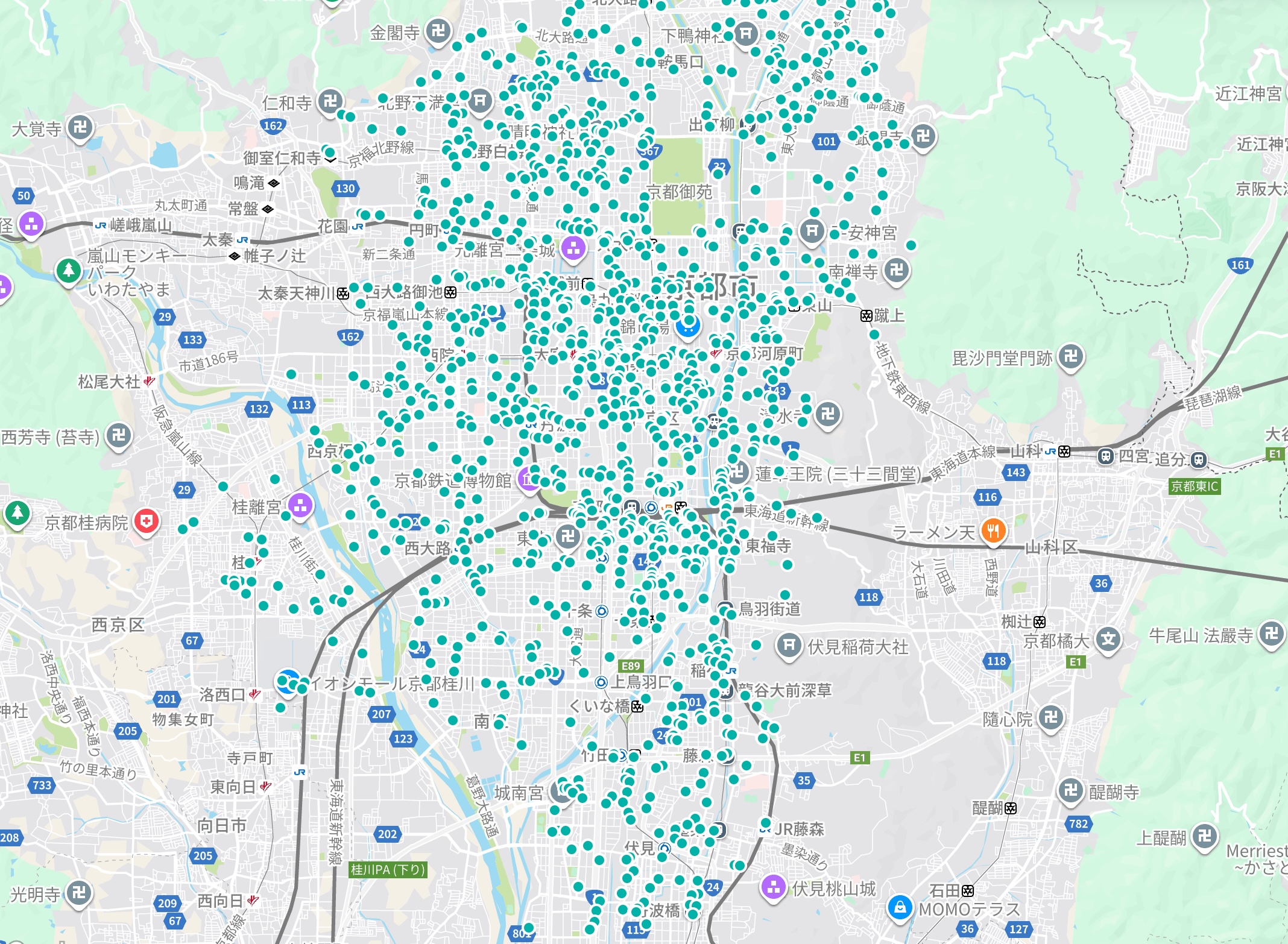 京都市内には、主要な観光地と市街地をつなぐようにポートが増えています。四条河原町周辺: カフェやショップの近くに多数設置されており、お買い物前後の移動に最適です。