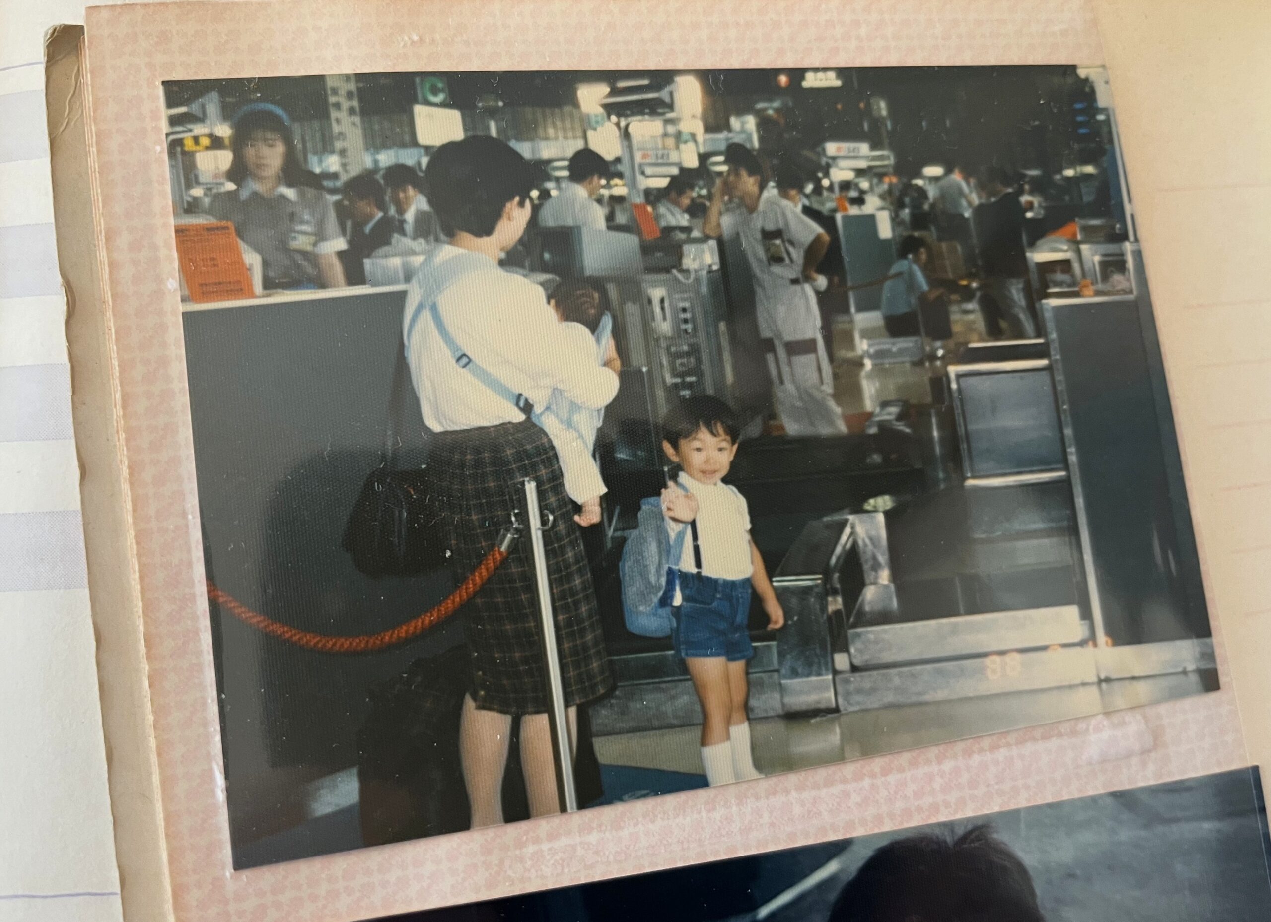 悠、3才(成田空港国際線出発ロビーにて、1988年9月19日) 撮影:宇野博二