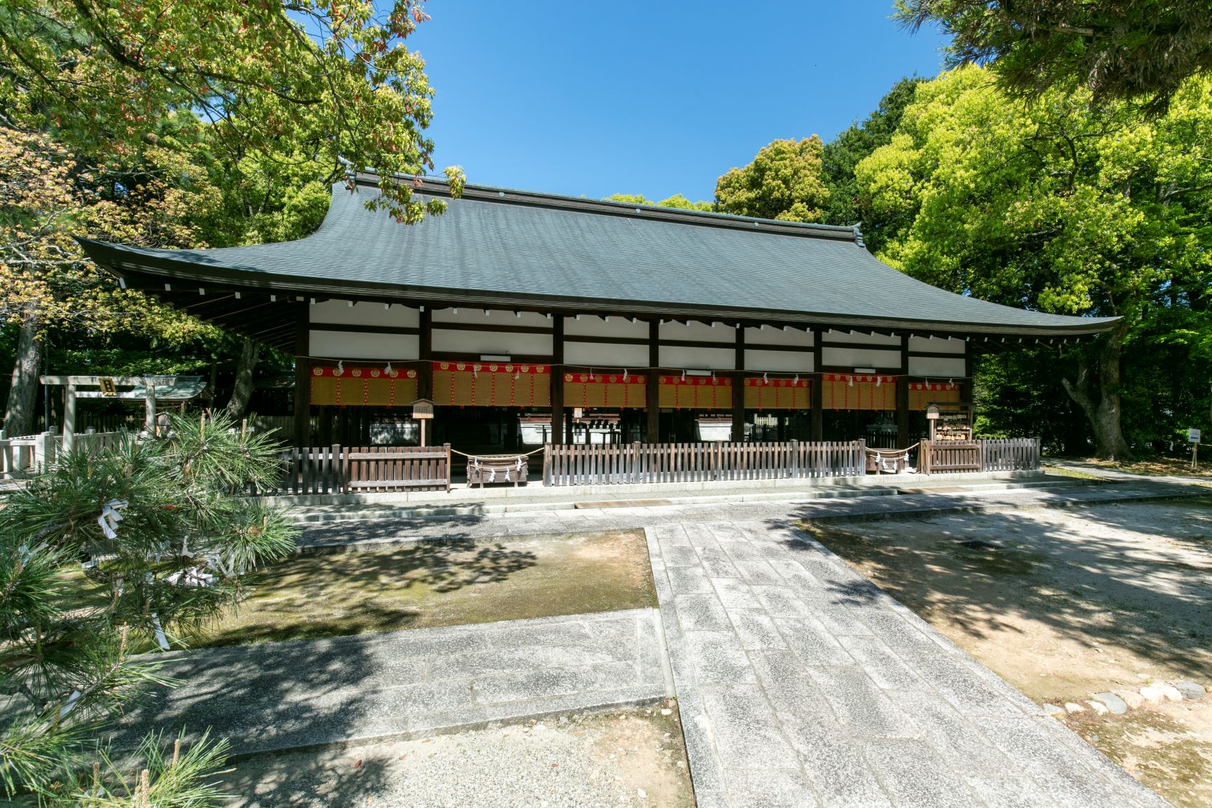 境内は広すぎず、参拝と散策を無理なく行える広さです。社殿と桜が重なる景色を見ながら歩くことができ、春の時期は特に人の流れがゆるやかです。