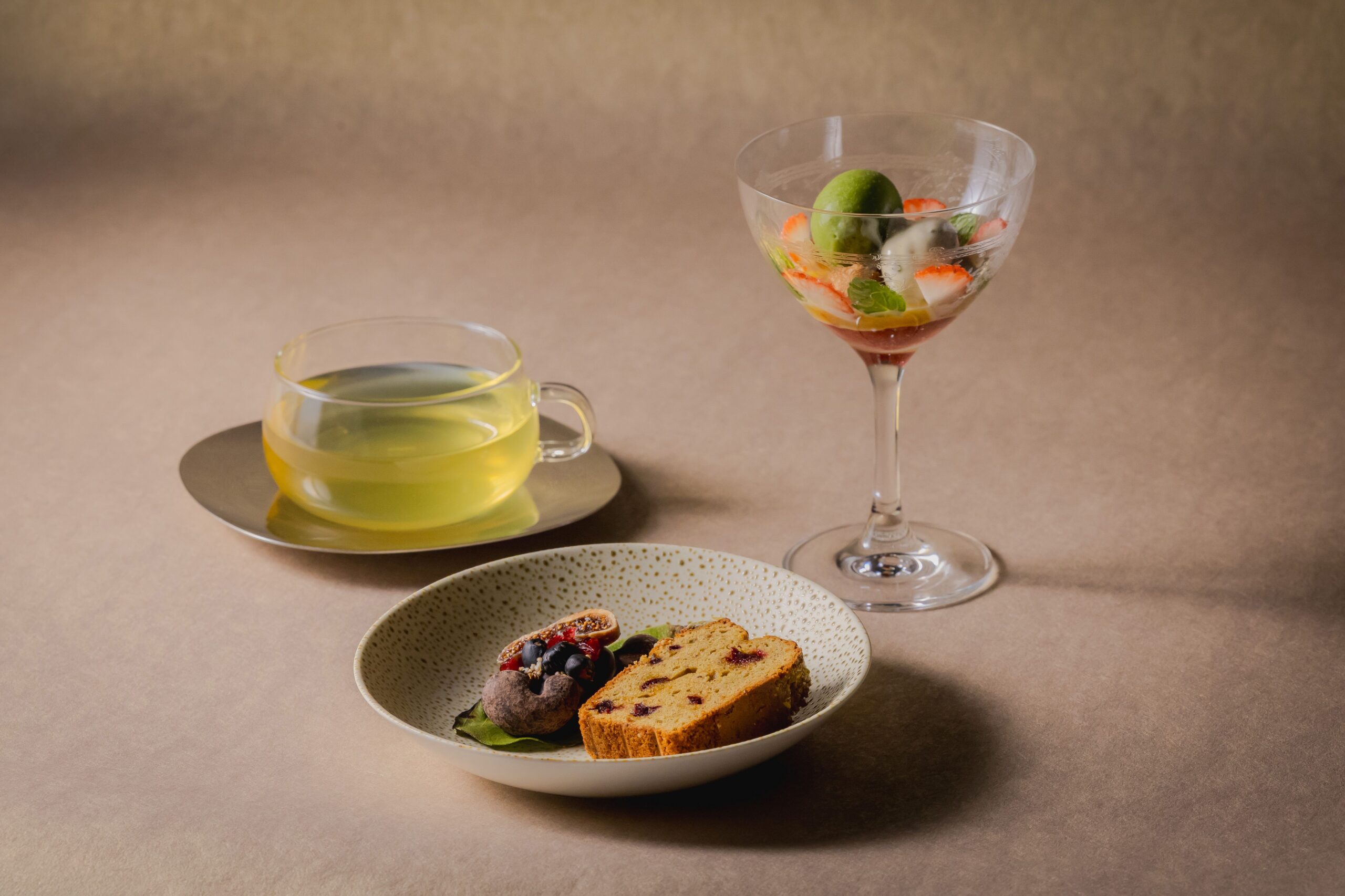 1階の「Juice & Sweets MUNI」は、テイクアウト中心のジュース&スイーツショップです。フランスで長く経験を積んだシェフパティシエ・内藤未央さんが手がけており、季節ごとに異なるドリンクやスイーツを楽しめます。見た目の華やかさだけに寄らず、素材の組み合わせや香りの出し方に工夫があり、ホテル内のショップでありながら、宿泊の有無に関係なく気軽に利用できる点も魅力です。