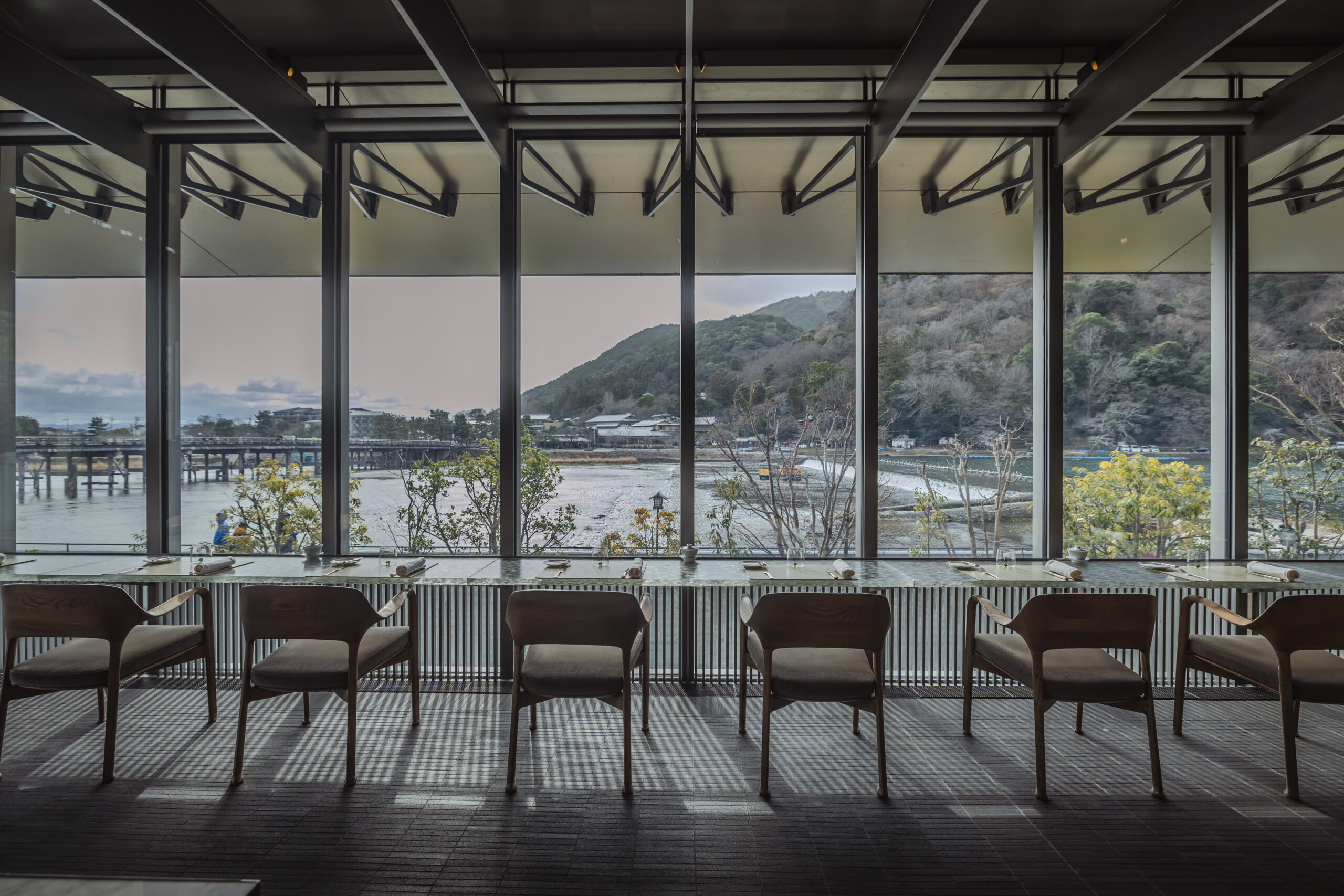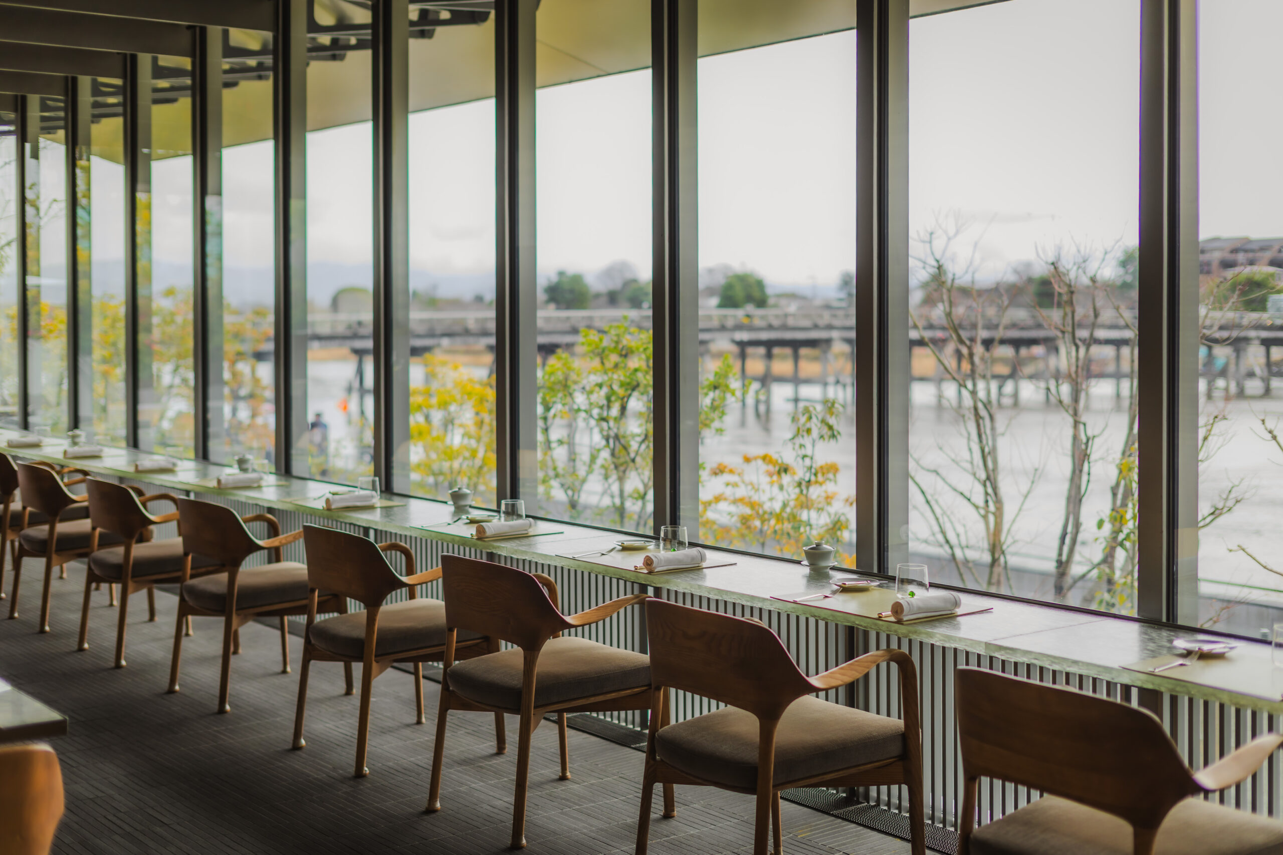 嵐山で外へ出て動き回る旅ももちろん魅力ですが、MUNI KYOTOでは館内で過ごす時間そのものに意味があります。食事の時間帯ごとに違う景色を見ながら、ホテルの中で一日を過ごせるのも魅力です。