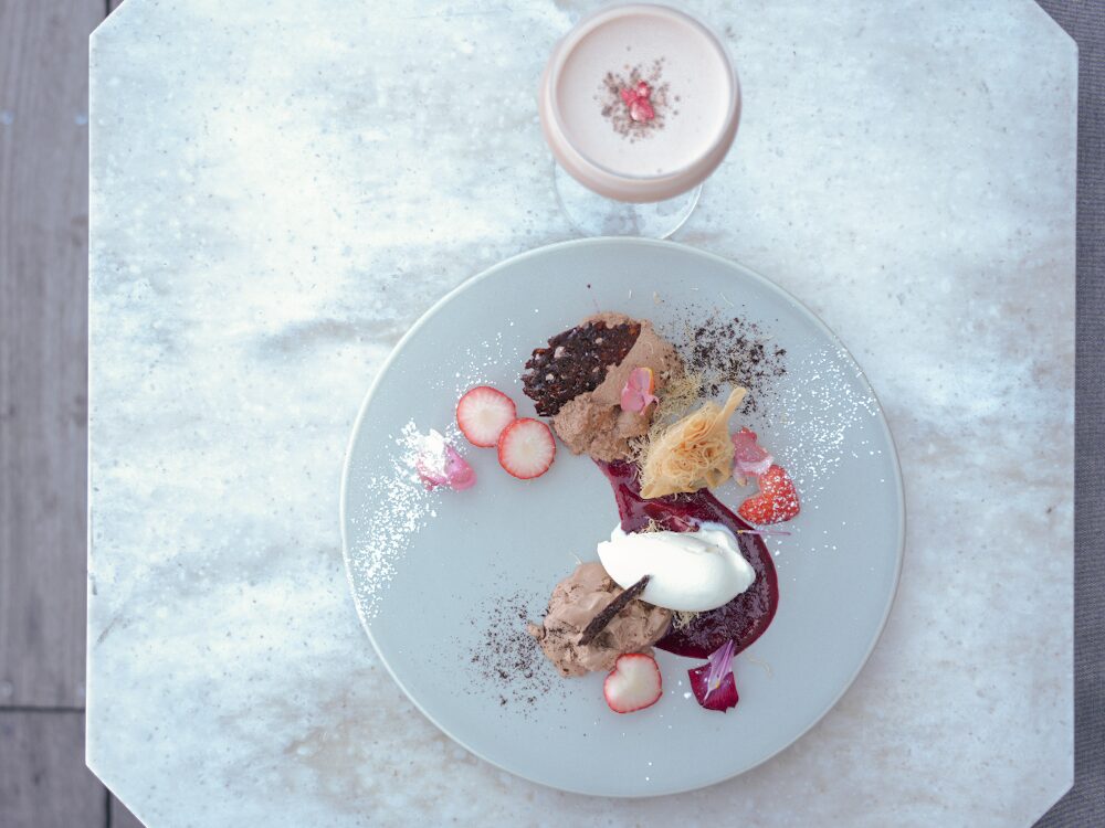 レストランでは、カカオの個性を活かしたスペシャルデザートプレートを用意。香りのニュアンスを意識しながら構成された一皿は、食後の時間をゆっくり過ごしたい方におすすめです。