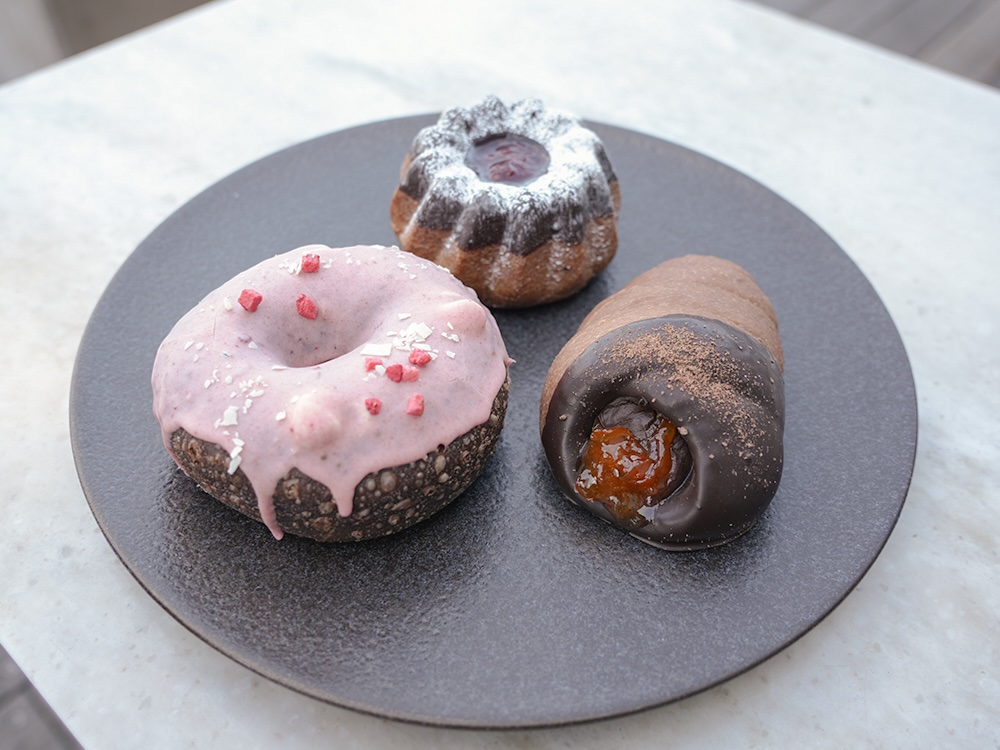 ベーカリーでは、ラズベリーチョコレートケーキやチョココロネ、クリームドーナツなど、日常使いしやすいラインナップが並びます。いずれもカカオの風味を活かしつつ、親しみやすい味わいに仕上げられています。