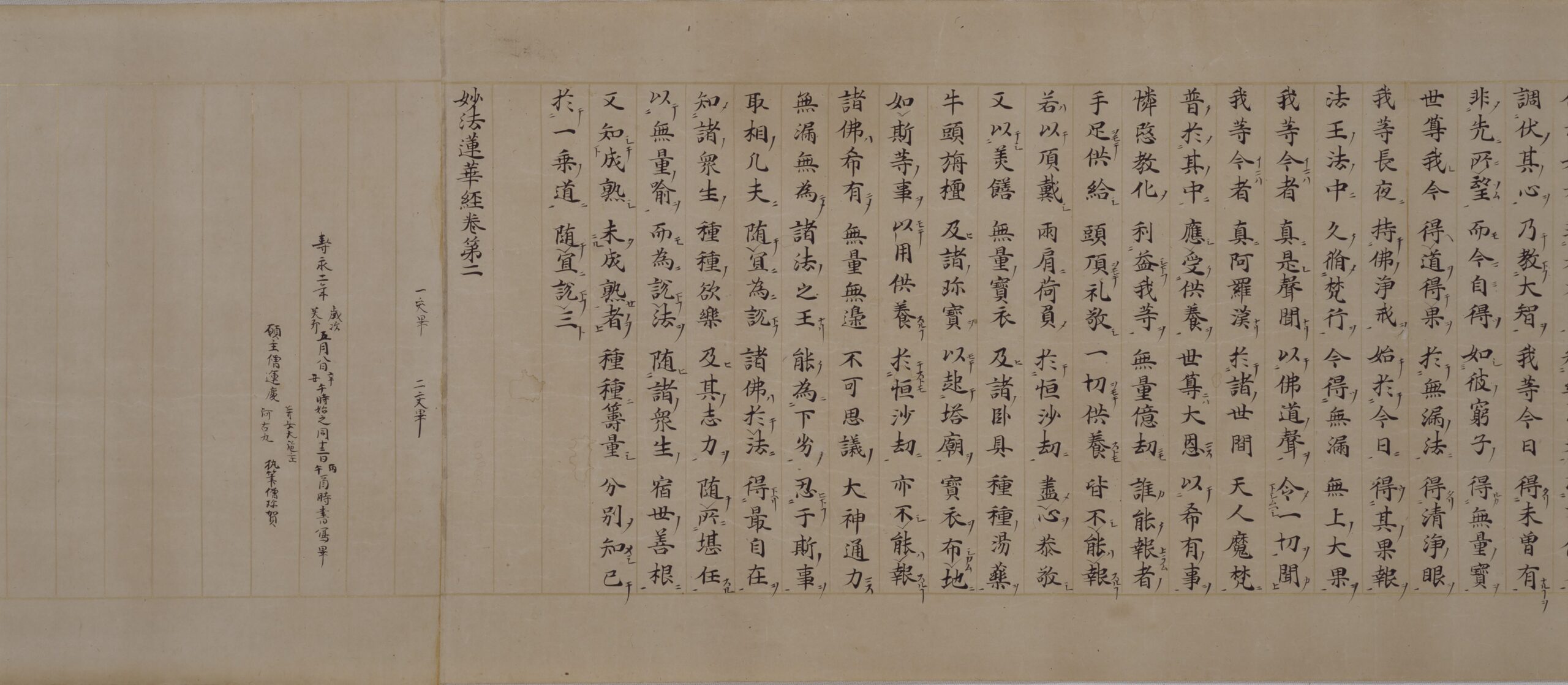 国宝 法華経(運慶願経) 巻第二 珎賀筆 平安後期・寿永2年(1183) 真正極楽寺 真如堂 画像提供:京都国立博物館