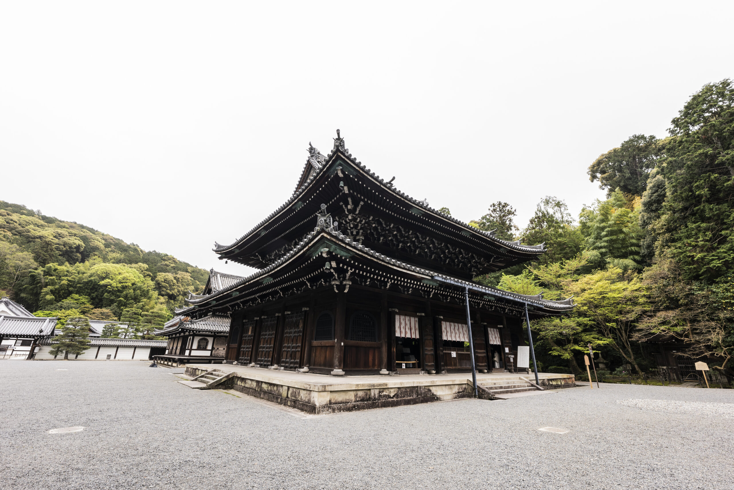 泉涌寺は真言宗泉涌寺派の総本山で、「御寺」とも呼ばれる皇室ゆかりの寺です。弘法大師空海がこの地に庵を結んだことに始まると伝えられ、鎌倉時代の俊芿によって大伽藍が整えられ、現在の泉涌寺として再興されました。境内から清水が湧いたことが寺名の由来とされています。