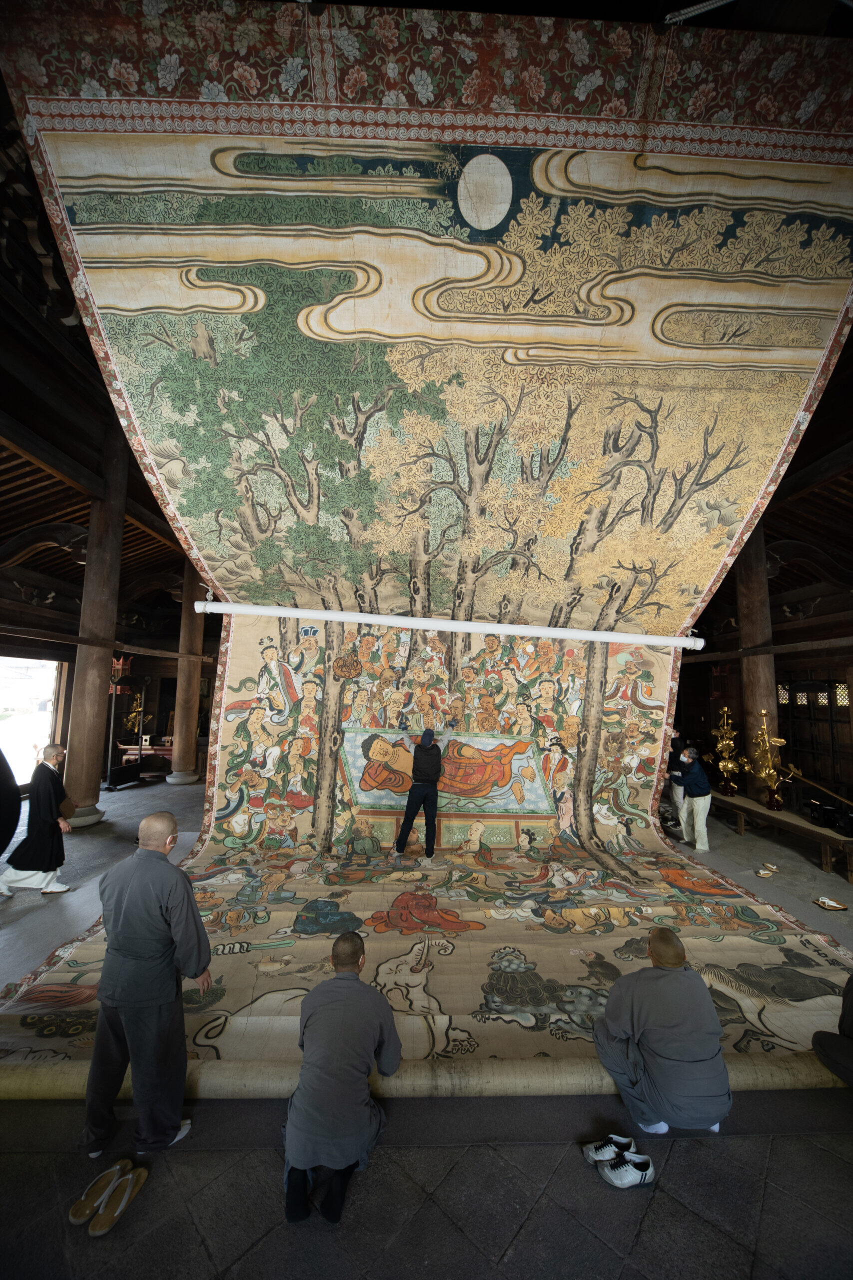 泉涌寺「大涅槃図公開」 日本最大級の涅槃図を間近で拝観