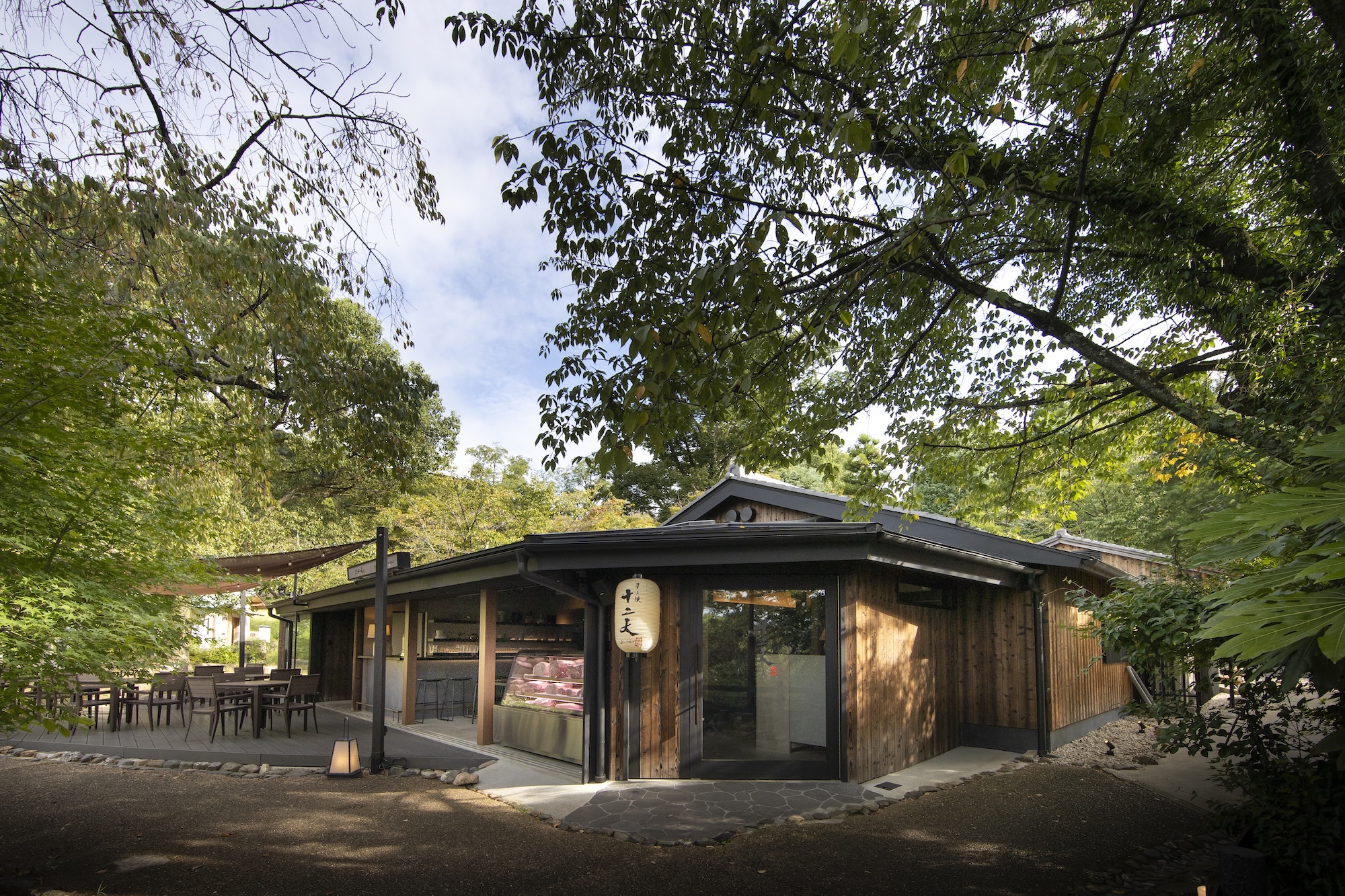 緑に包まれた、開放感あふれるテラス席も「すき焼き十二天 京都」の魅力のひとつです。公園に溶け込む特等席は、20席からなる贅沢な空間です。