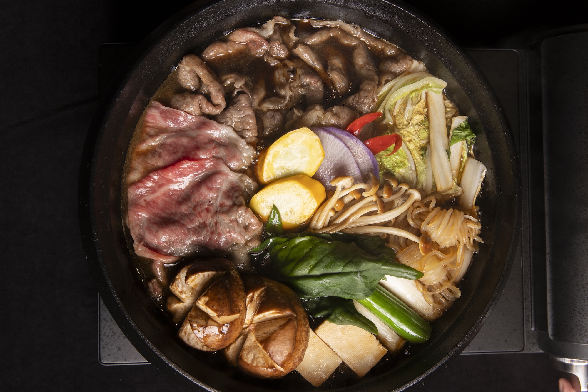 スタッフが目の前で丁寧に焼き上げるすき焼きの香りとともに、厳選した和牛の旨みを堪能できます。