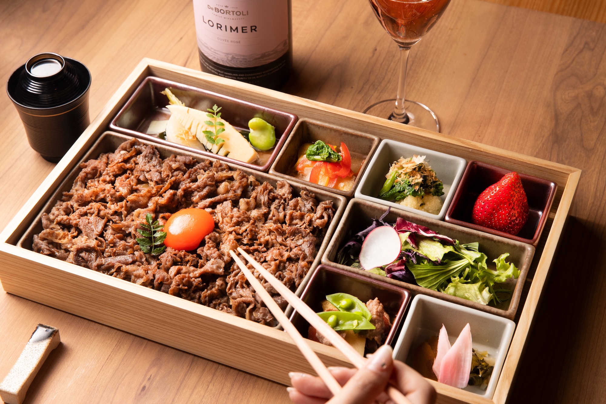 初のテラス・桜シーズンを迎えるこの春、丸山公園でのひとときにふさわしい新作メニューが提供されます。この度登場するランチ御膳は、緑に囲まれたテラス席にぴったりなお弁当スタイルのメニューです。名物のすき焼きのほか、黒毛和牛100%のハンバーグやA5和牛のビフテキなど、人気メニューを組み合わせたラインナップから選ぶことができます。