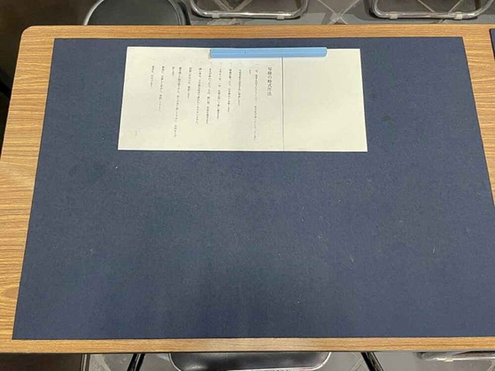東寺の写経の会場は食堂(じきどう)の一角にあります。本尊は十一面観音菩薩。その左には四天王が並び、写経を行う人を護るかのように静かに佇んでいます。机の上には、薄く下書きされた般若心経の半紙。筆をとり、一文字ずつなぞっていくうちに、自然と心が落ち着いていきます。