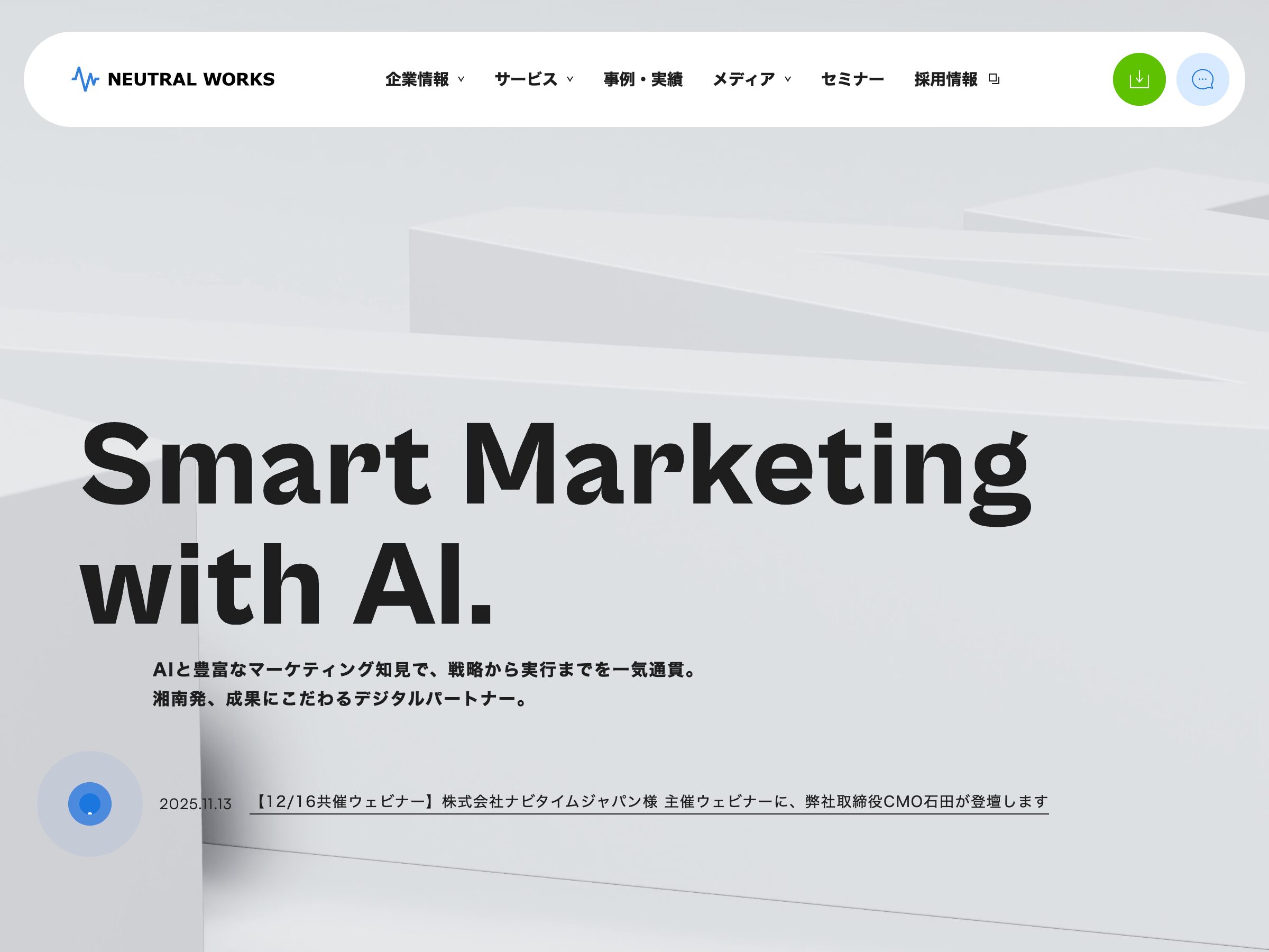 株式会社ニュートラルワークスは、3,000社以上の支援実績を持つデジタルマーケティングカンパニーです。月間数十万PVを達成した自社メディアの実践ノウハウを強みに、成果に直結するオウンドメディア制作・構築を提供しています。